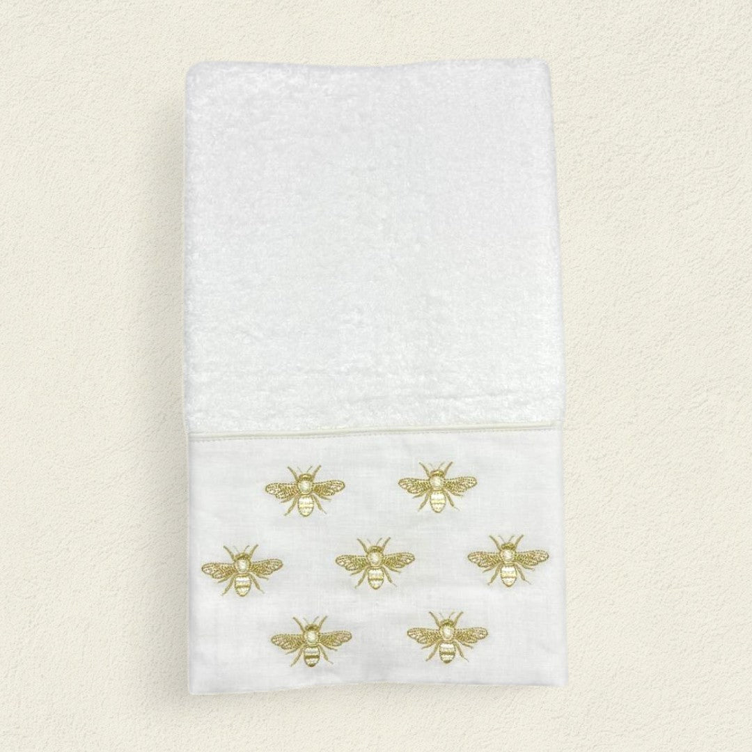 La toalla Abejas rinde homenaje al trabajo silencioso y al dulzor que nace de la constancia. Cada abeja bordada simboliza armonía, unión y la dulzura del esfuerzo compartido.