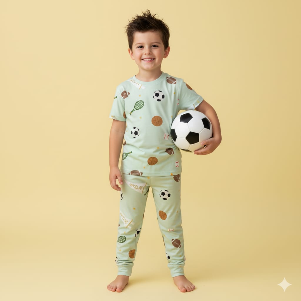 La pijama Balones Felices está pensada para los niños que viven entre goles, risas y movimiento. Su diseño deportivo y su textura ligera ofrecen libertad y frescura, perfecta para dormir después de un gran partido.