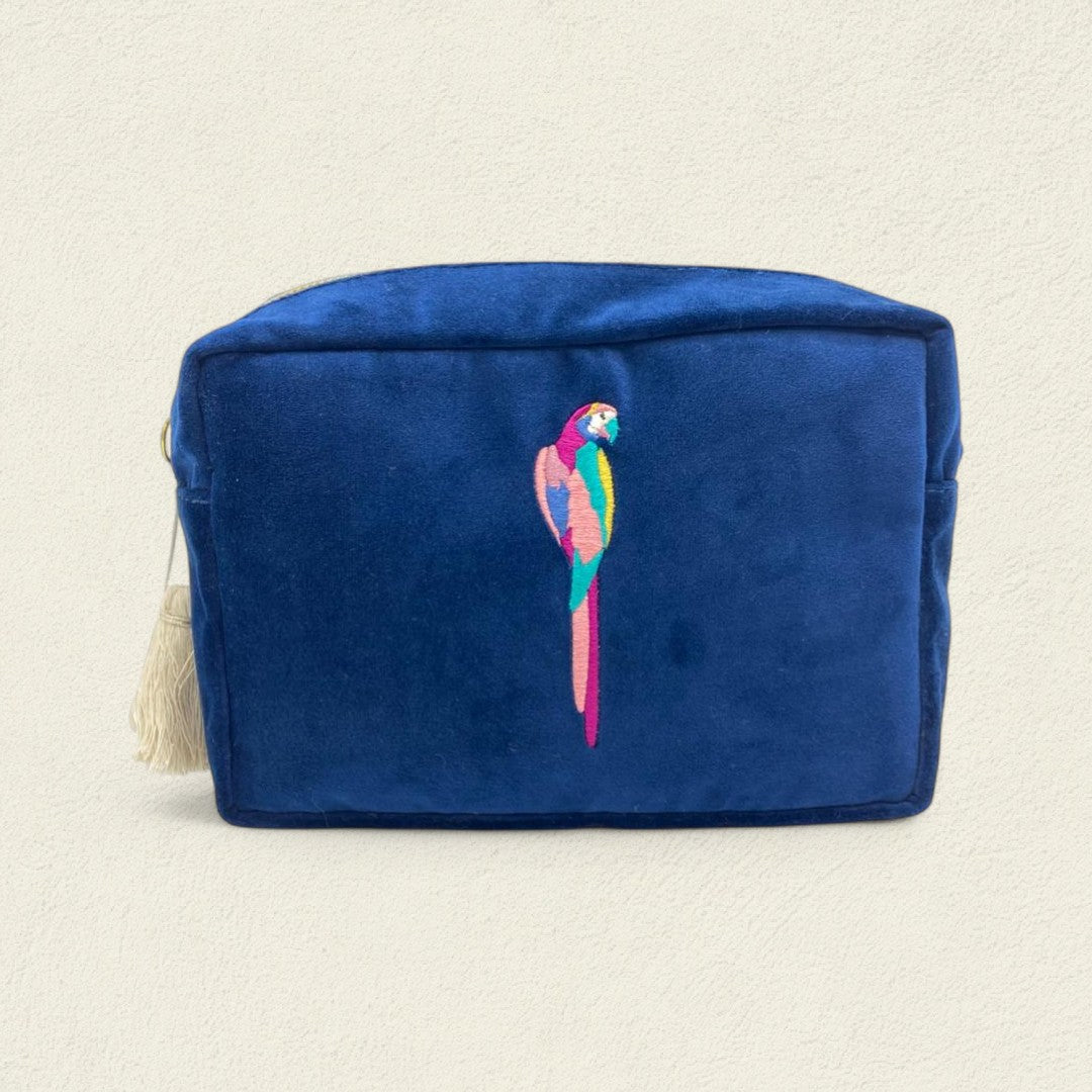 El neceser Canto de Guacamaya celebra la alegría vibrante de la naturaleza tropical. Sus tonos vivos y su bordado exuberante evocan libertad, energía y celebración.