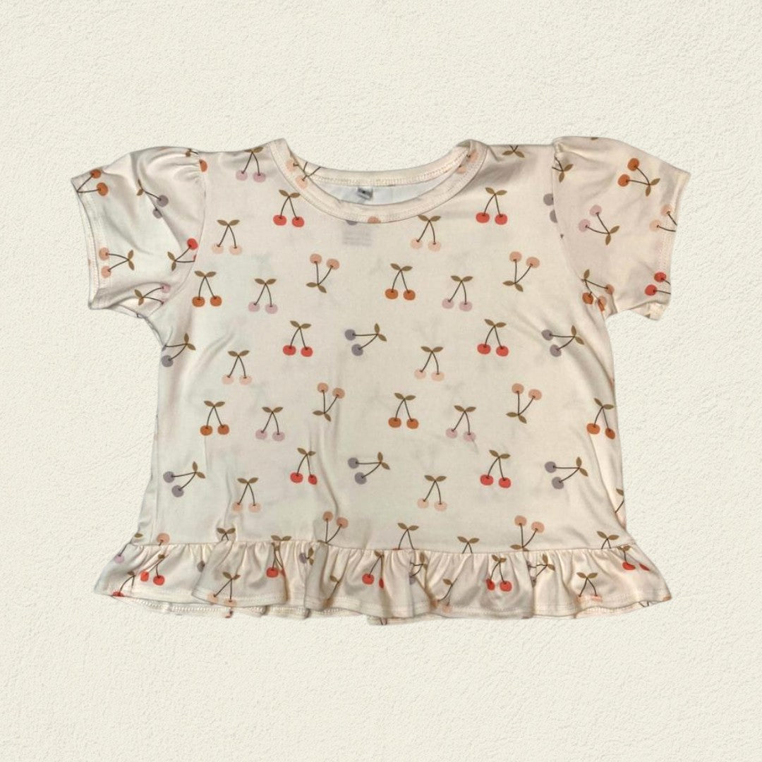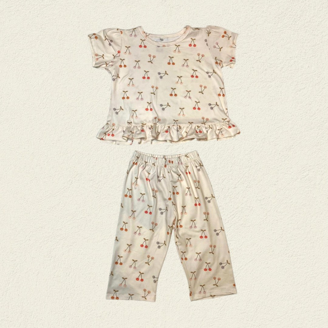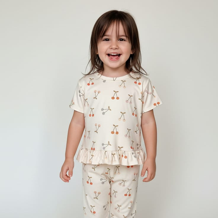 La pijama Cerezas Dulces combina la suavidad del algodón con un estampado encantador que invita a soñar despierto. Su tono beige y sus detalles rojos crean un look tierno y clásico que nunca pasa de moda.