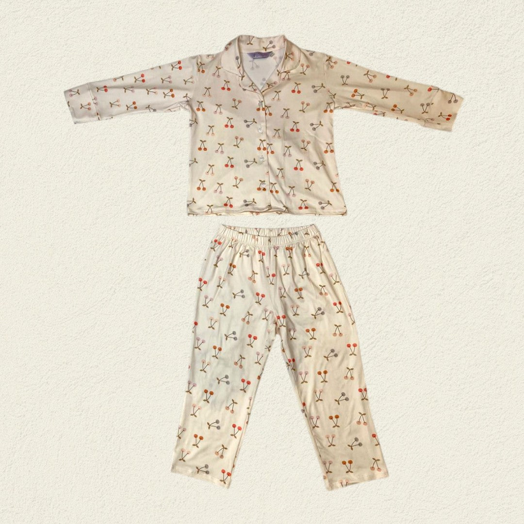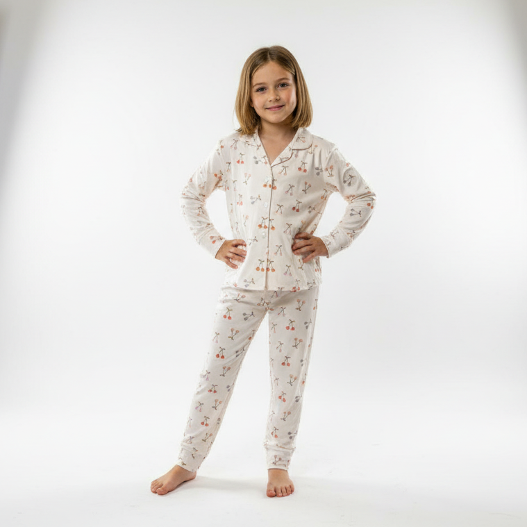 La pijama Cerezas combina un fondo beige suave con un diseño tierno y divertido. Su algodón fresco abraza con comodidad, convirtiéndola en la compañera perfecta para noches tranquilas y mañanas llenas de sonrisas.