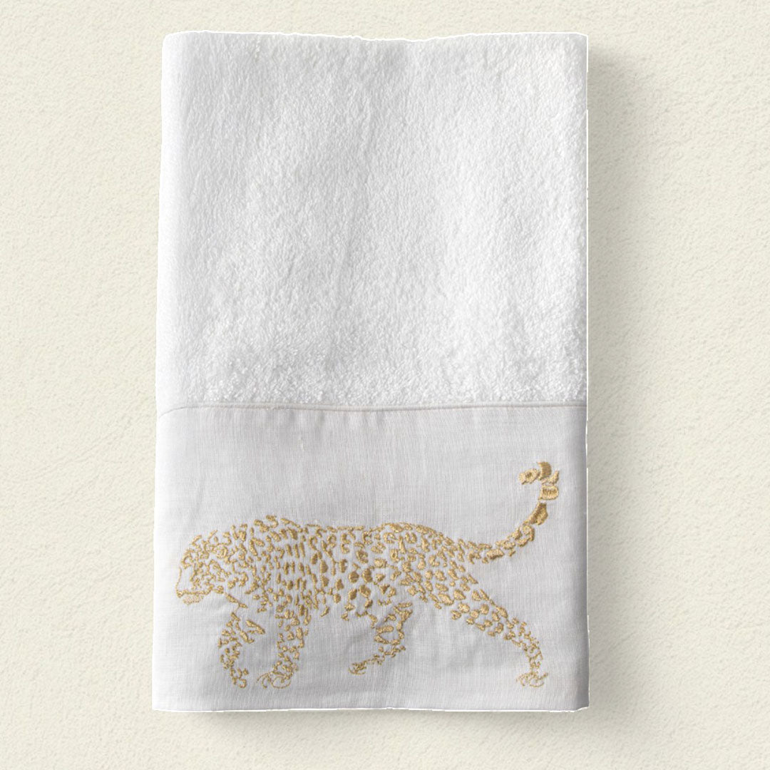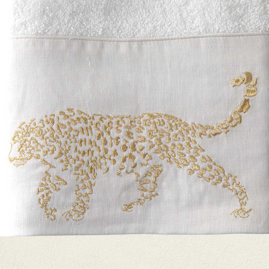 La toalla Chita Dorada – Fuerza Silenciosa es un homenaje a la elegancia felina, a esa energía instintiva y femenina que camina con seguridad, sin prisa. Su bordado en tonos dorados representa el poder suave, la intuición que guía y la belleza que no se impone, pero permanece.