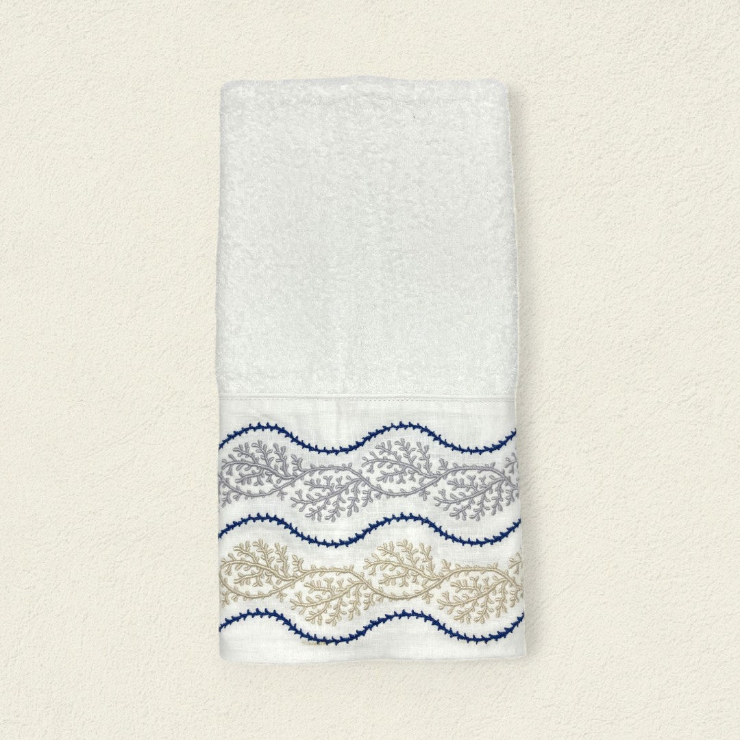 La toalla Corales de Agua Azul se inspira en los jardines secretos del océano, donde los corales respiran en tonos frescos y cristalinos. Un diseño que transmite serenidad, frescura y vitalidad marina.