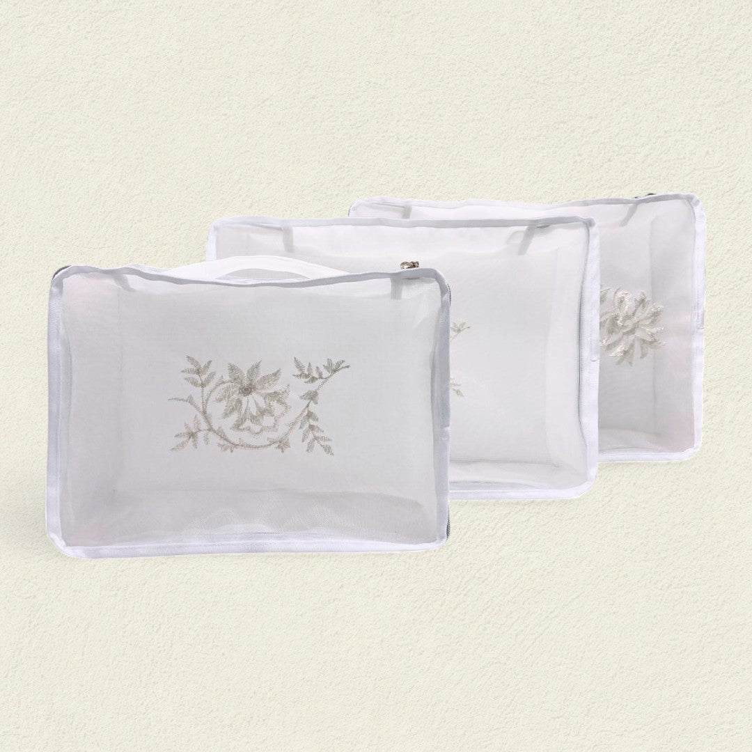 El Set Enredadera de Camelias entrelaza hojas y pétalos en un bordado que evoca la conexión entre lo natural y lo eterno. Cada hilo traza un camino de armonía, donde la belleza se entrelaza con la funcionalidad.