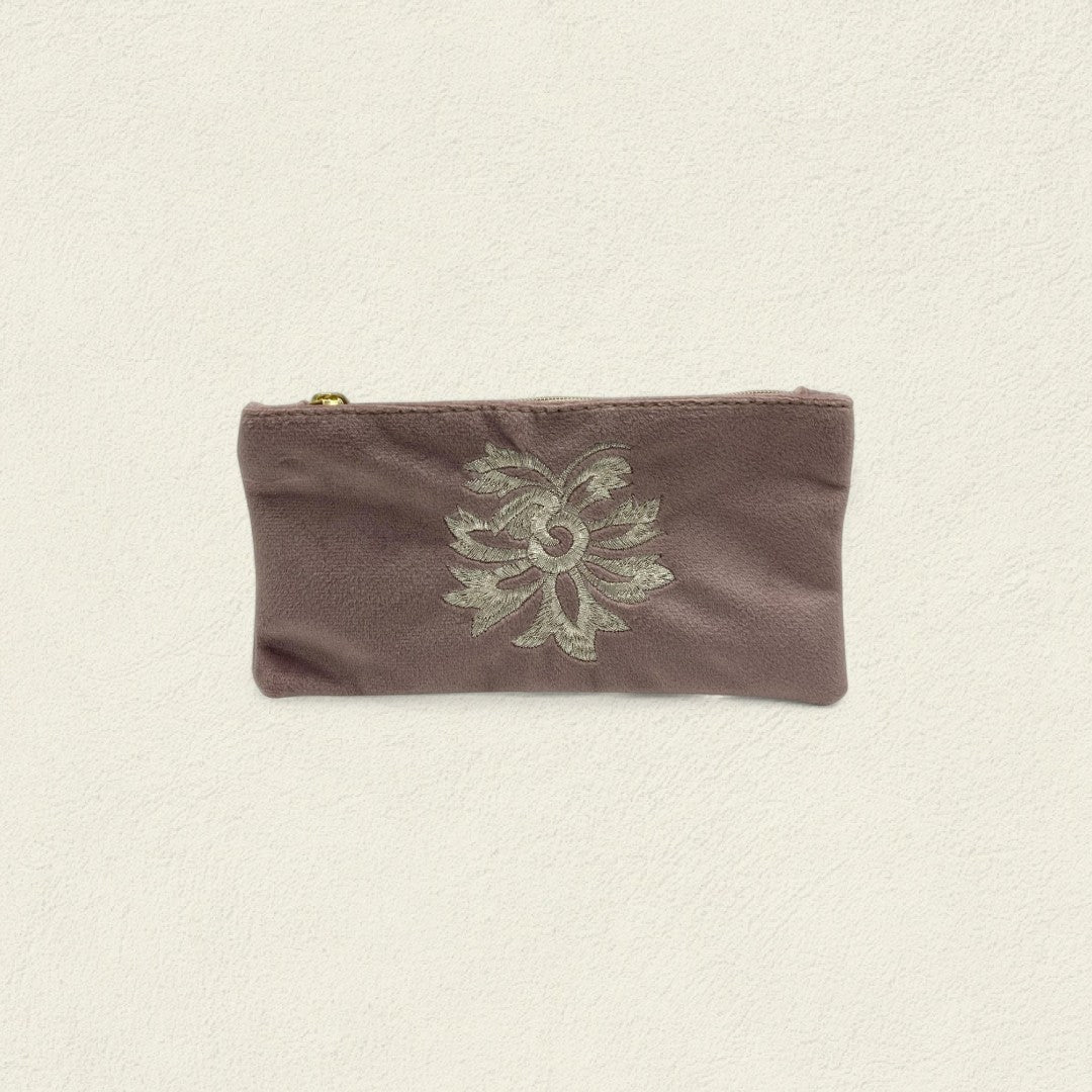 El porta gafas Enredadera de Camelias Lilas florece entre hilos suaves y matices serenos, evocando la calma de una tarde perfumada por flores en reposo.