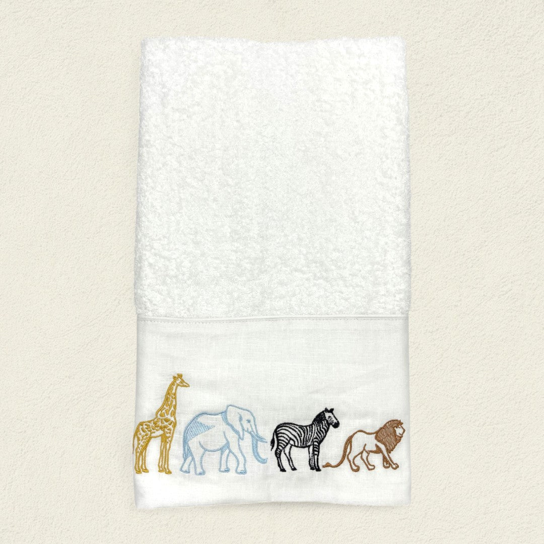 La toalla Espíritu de Selva refleja la fuerza indómita de la naturaleza, un refugio donde conviven misterio, energía y abundancia. Sus bordados evocan el ritmo vital de la selva: vibrante, fértil y lleno de vida.