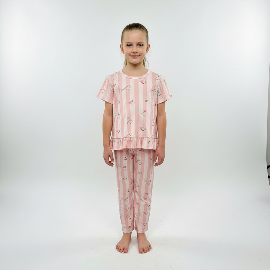 La pijama Gimnastas está pensada para niñas llenas de energía y creatividad. Su tela suave acompaña los movimientos con libertad, y su diseño rosa evoca ternura y fuerza a la vez.