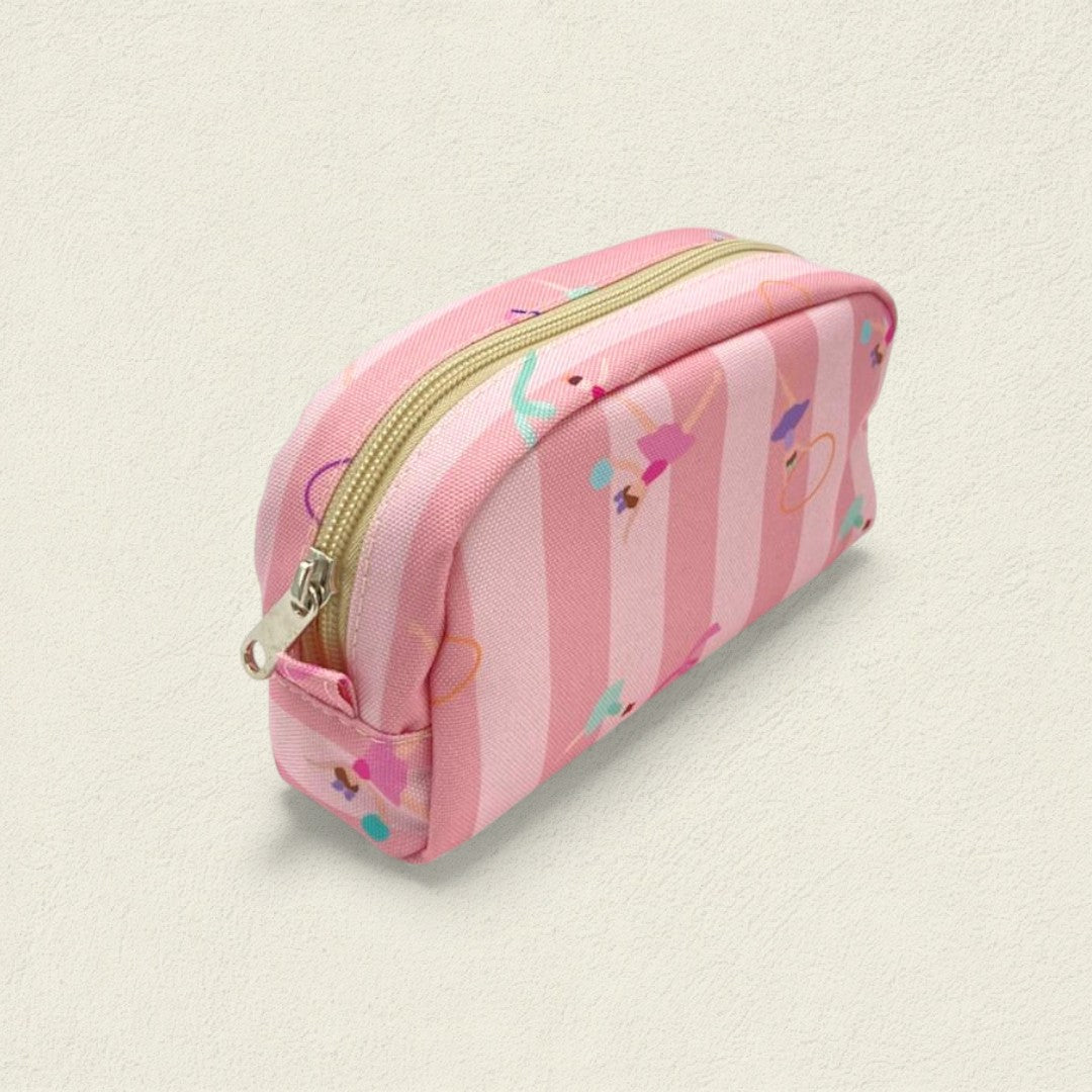 La cartuchera Gimnastas en Movimiento celebra el espíritu alegre y ágil de las niñas que sueñan en grande. Un diseño vibrante y delicado para guardar todo lo que necesitan para estudiar, crear y jugar.