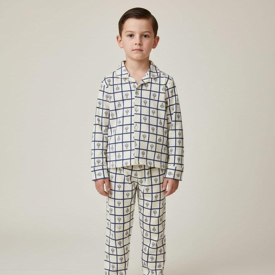 La pijama Globos de Cuento manga larga invita a imaginar aventuras por el cielo, entre colores y fantasía. Su tela suave y cálida es perfecta para noches de descanso profundo y sueños que flotan libres.