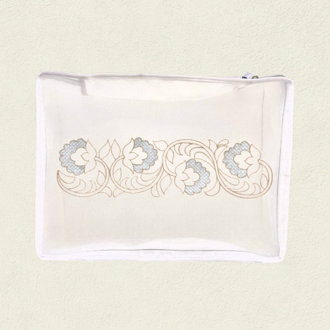 El Set Jardín de Claveles Azules captura la frescura de un amanecer en flor. Su bordado, delicado y envolvente, evoca un jardín suspendido entre calma y movimiento.
