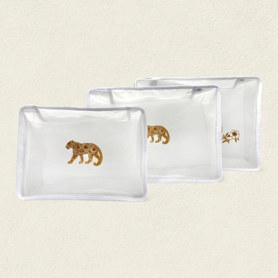El set Jardín del Jaguar Floral combina la energía protectora del jaguar con la delicadeza de las flores que brotan a su paso. Un diseño que honra la dualidad femenina: poder y ternura, acción y quietud.