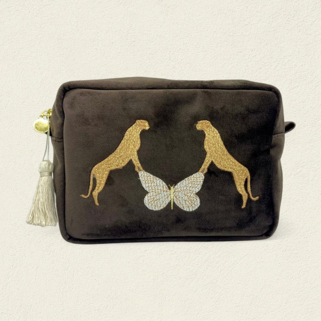El Neceser Leopardo del Alma Alada une la elegancia del terciopelo con el poder simbólico del leopardo y la ligereza de la mariposa. Una pieza que representa el equilibrio entre la fortaleza interior y la gracia femenina.