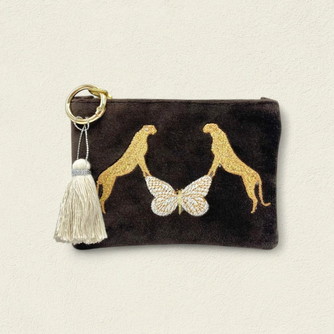 El Monedero Leopardo Mariposa fusiona el poder del leopardo con la sutileza de la mariposa. Su bordado celebra la dualidad femenina: instinto y ternura, impulso y calma.