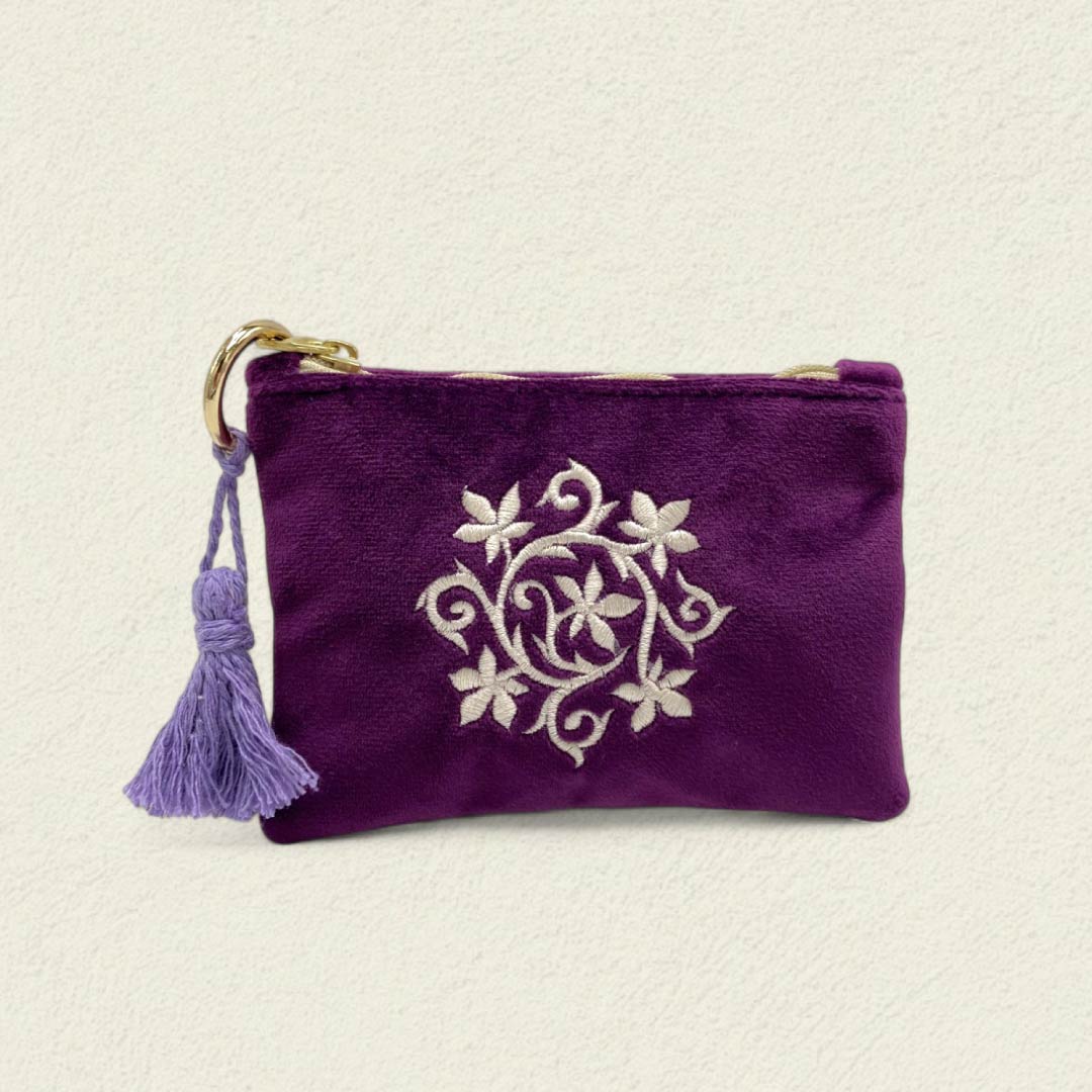 El Monedero Mándala Mística de Uva evoca la armonía de los ciclos y la belleza de lo sagrado en un bordado que florece con calma. Un amuleto pequeño que guarda lo esencial con dulzura y profundidad.
