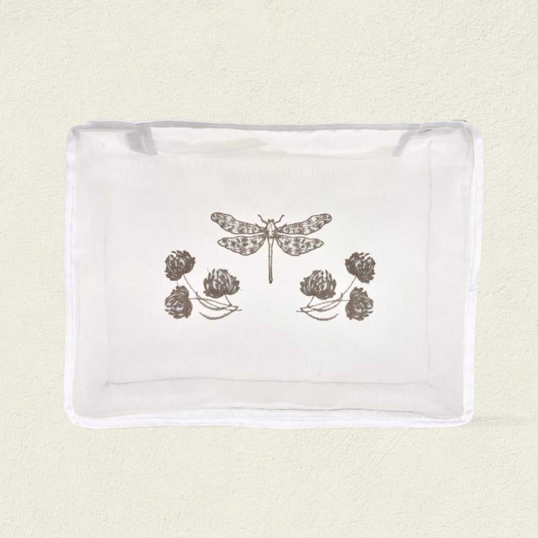 El Set Manto de Luz y Flores entrelaza la delicadeza de las libélulas con la gracia del manto de María, creando una pieza que evoca protección, pureza y renovación.