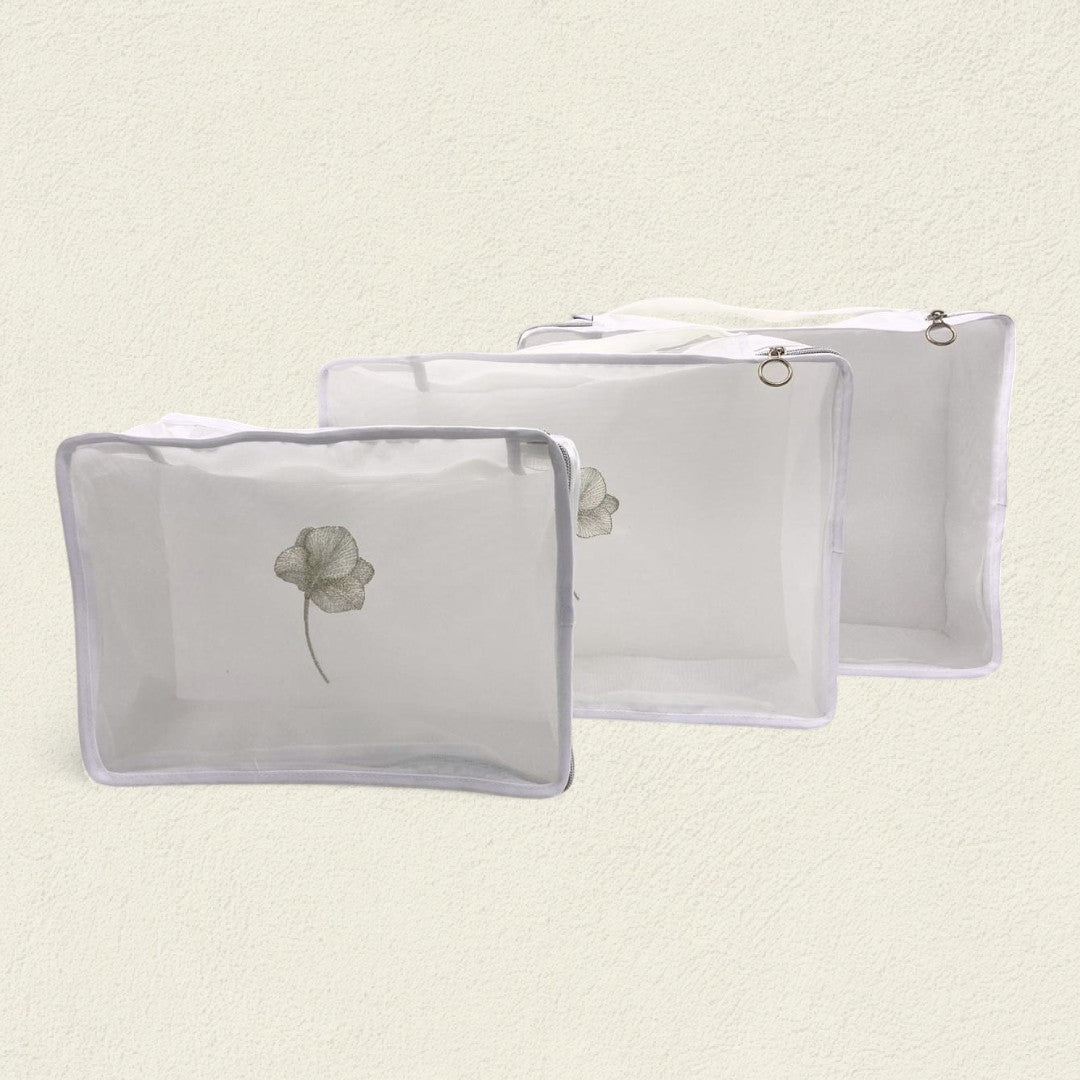 Tres tamaños versátiles que protegen con suavidad lo que llevas dentro, elevando el arte del orden a un gesto de belleza interior.