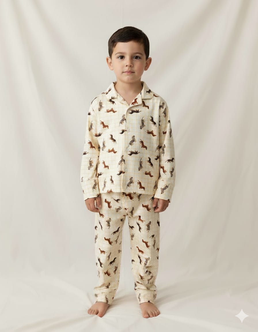 La pijama Perros Amigos manga larga celebra la alegría y la compañía de los mejores amigos peludos. Su diseño encantador y su algodón suave crean noches cálidas, tranquilas y felices.