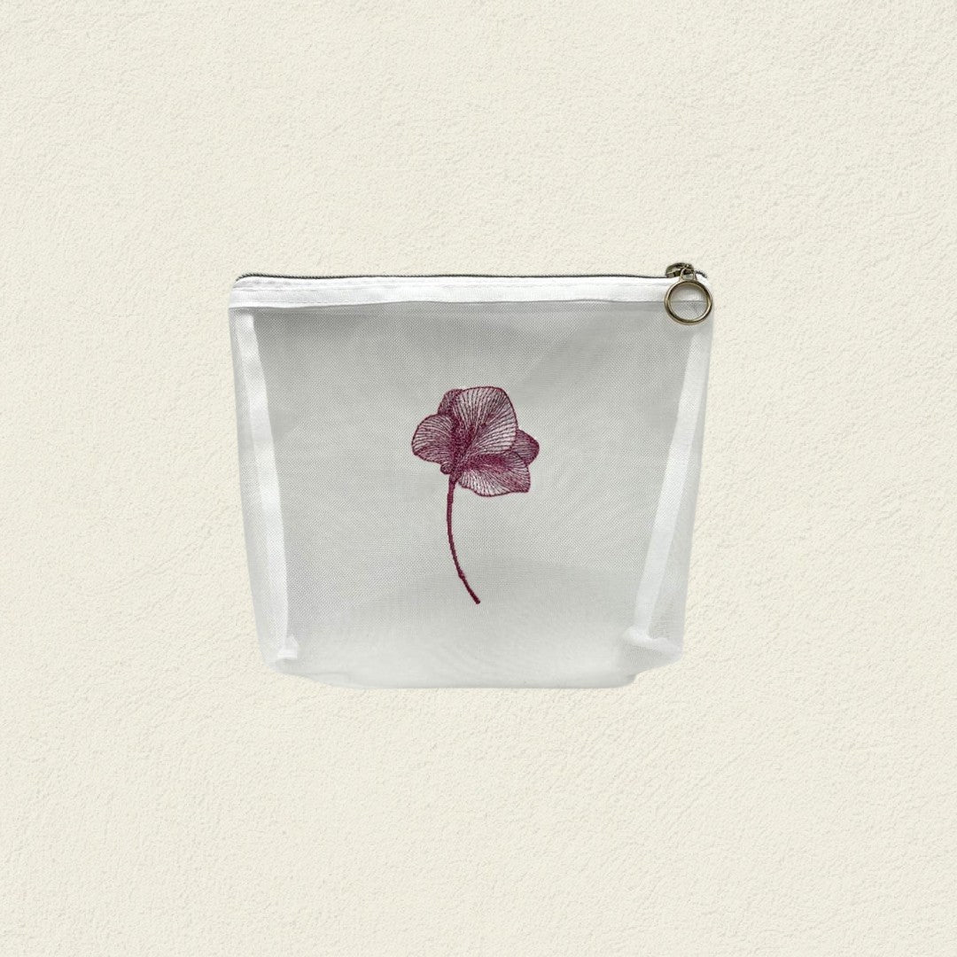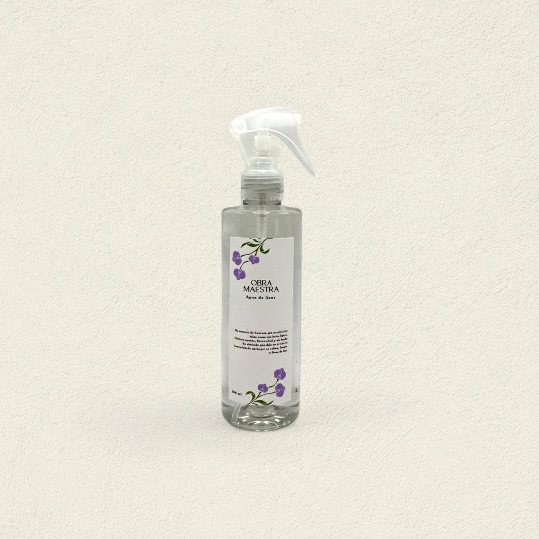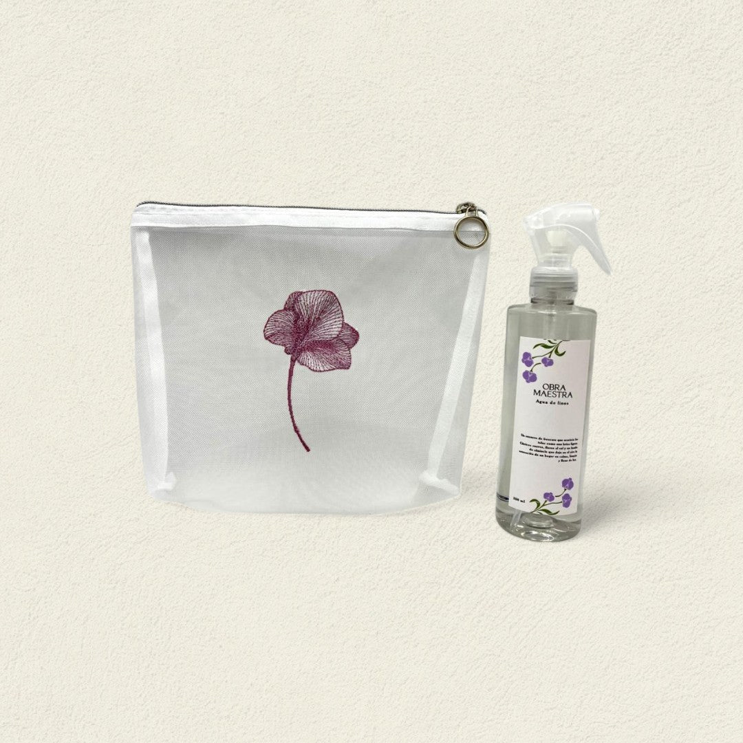 Cosmetiquera de malla bordada + Agua de Lino Obra Maestra