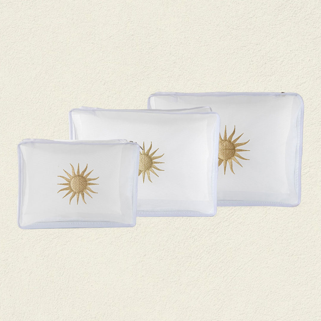 El set de organizadores Sol de Vida fue creado para acompañarte con belleza y orden en cada trayecto. Tres tamaños (grande, mediano y pequeño) que se adaptan a tus necesidades, ideales para empacar con claridad y estilo, ya sea en la maleta o en tu día a día.