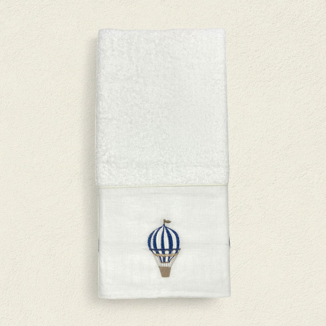 La toalla Sueños de Globos invita a elevar el espíritu y dejarse llevar por la magia de lo simple. Globos bordados que evocan celebraciones, libertad y la alegría de flotar en lo etéreo.