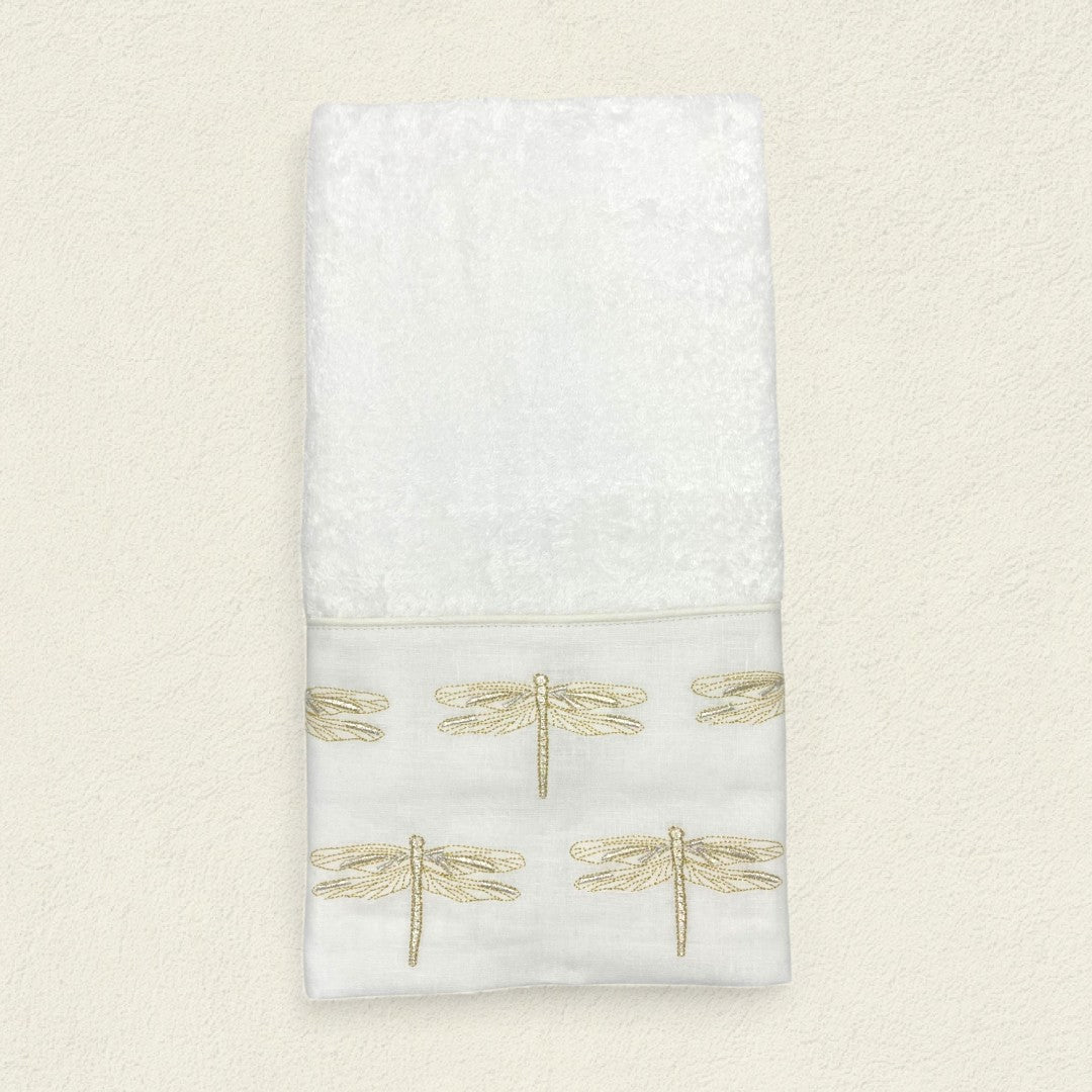 La toalla Vuelo de Libélulas honra a este ser alado, símbolo de transformación y ligereza del alma. Rectas y firmes en su vuelo, evocan claridad y equilibrio, recordándonos que siempre es posible avanzar con gracia.